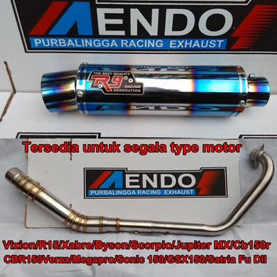 Knalpot R9 Mugello utk Vixion/R15/Xabre/Byson/Jupiter mx/Cb150r/Cbr150/Verza/Sonic/Satria Fu Dll
